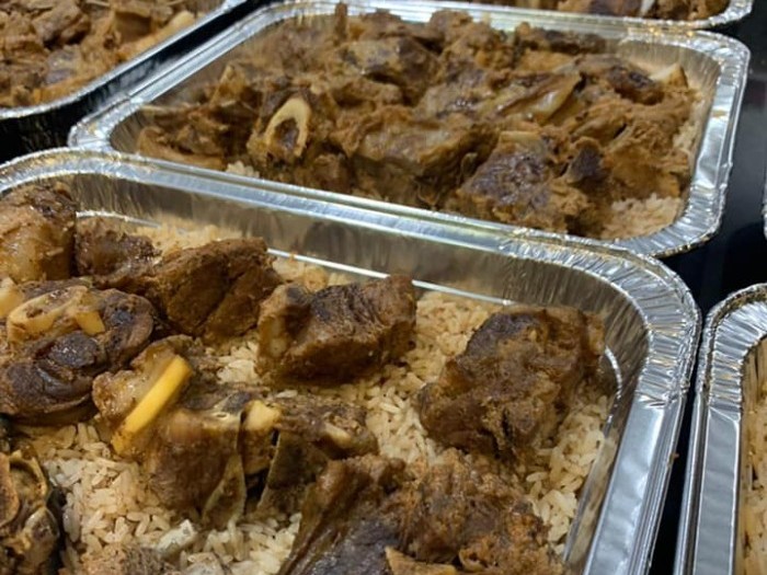 Lamb and rice meal for two families of 5